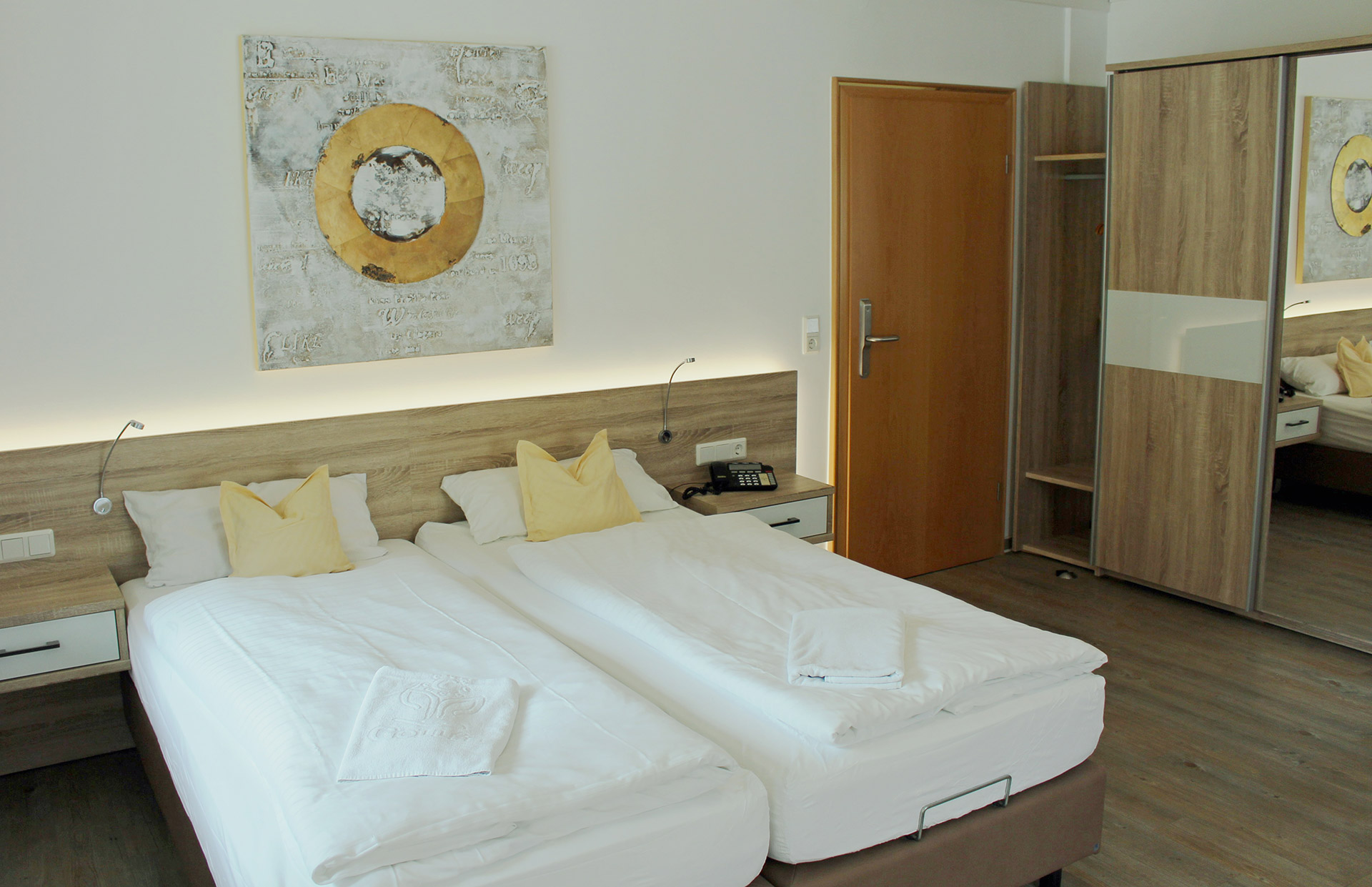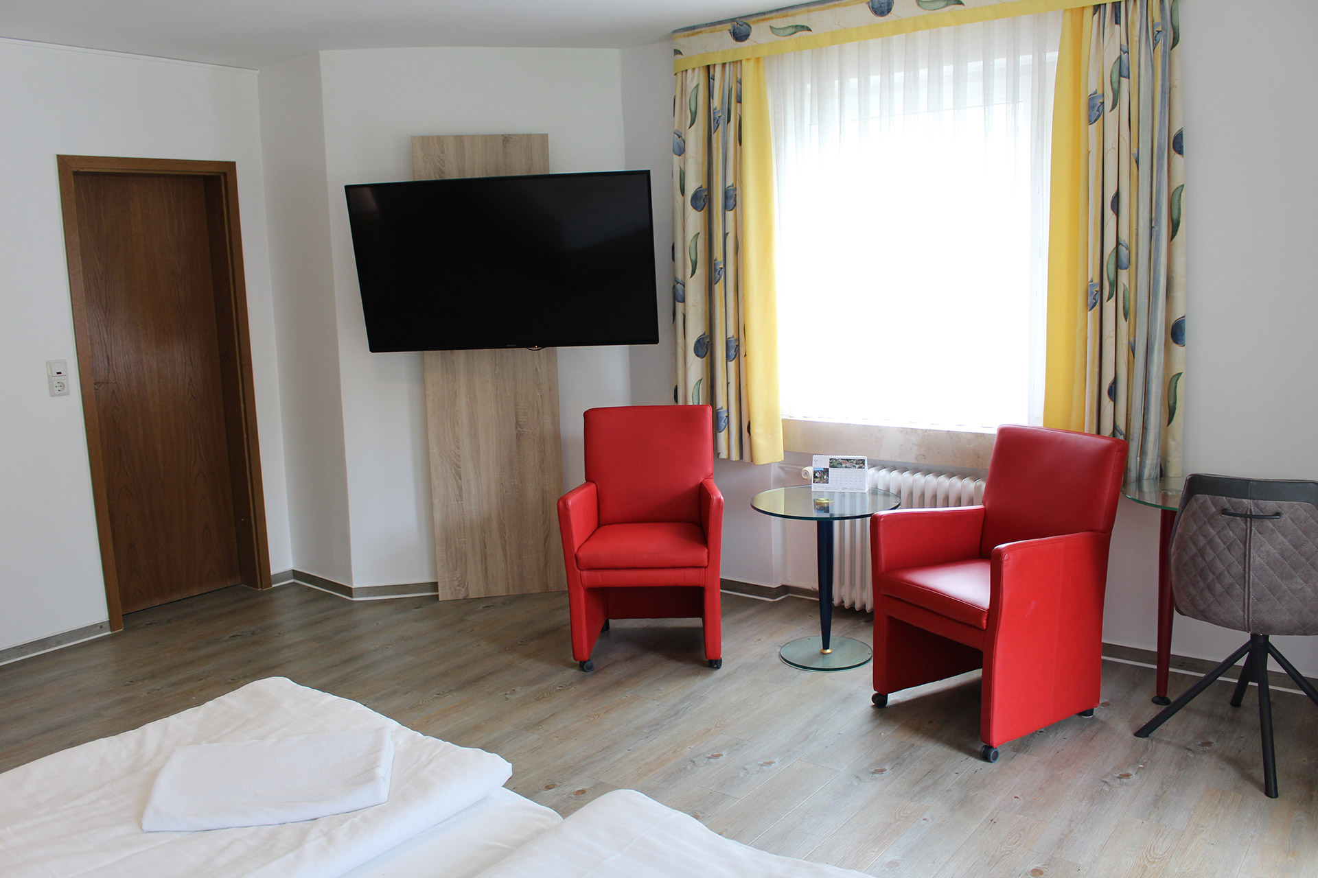 - Ruhige Zimmer mit Blick ins Grüne, alle modernisiert mit Schreibtisch, Boxspringbett, Durchwahltelefon, TV, WLAN und Zimmersafe.