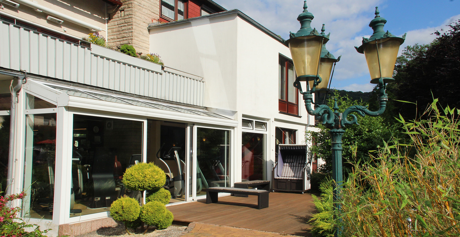 - Im Therapiebereich stehen – je nach Anwendung – Einzeltherapieräume, Gruppenräume und z. B. die moderne Medizinische Trainingstherapie in unserem Sportstudio zur Verfügung. Außerhalb der Therapiezeit oder einer Wanderung durch die unmittelbar angrenzenden Wanderwege durch den schönen Südharz finden Sie Entspannung in unsem hauseigenen Schwimm- und Saunabereich, oder auch in unserer nahe gelegenen Kirchberg-Therme. Hier können Sie sich auch für einen gemeinsamen Kegelabend verabreden.